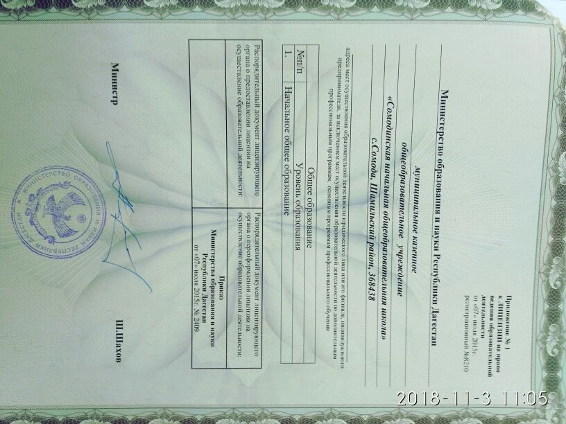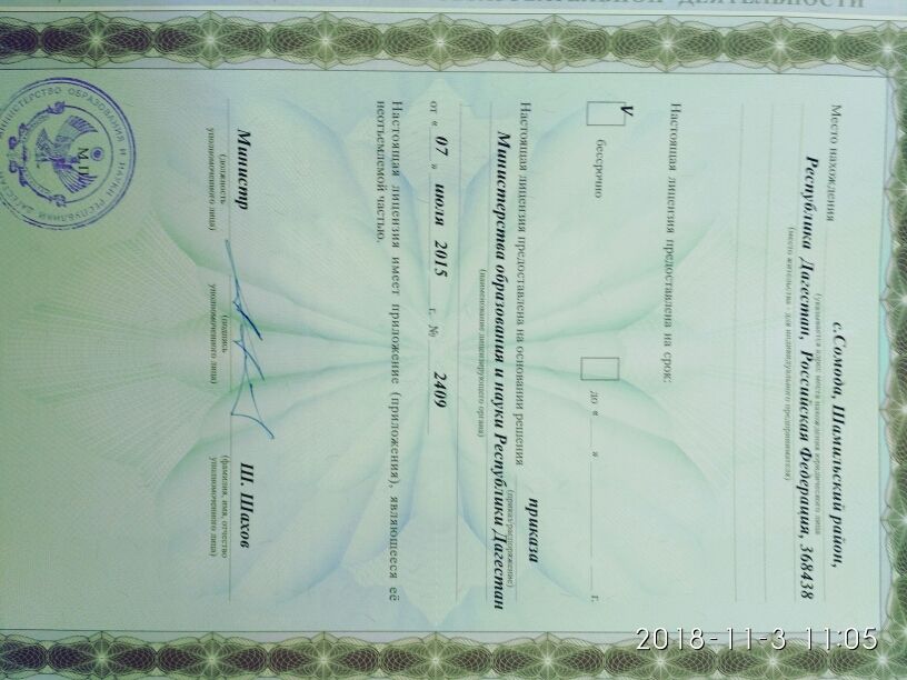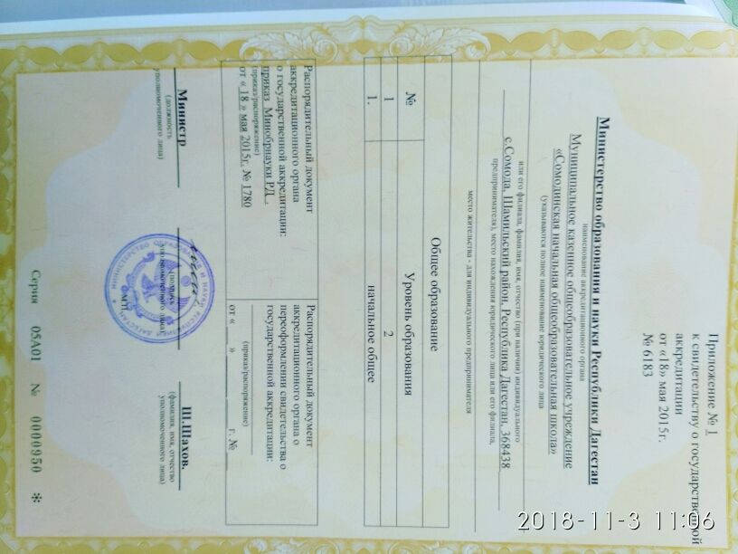 | Адрес местонахождения образовательной организации* | 368438, РД, Шамильский район, с. Сомода Ул.Магомеда Тайгибова №16 |